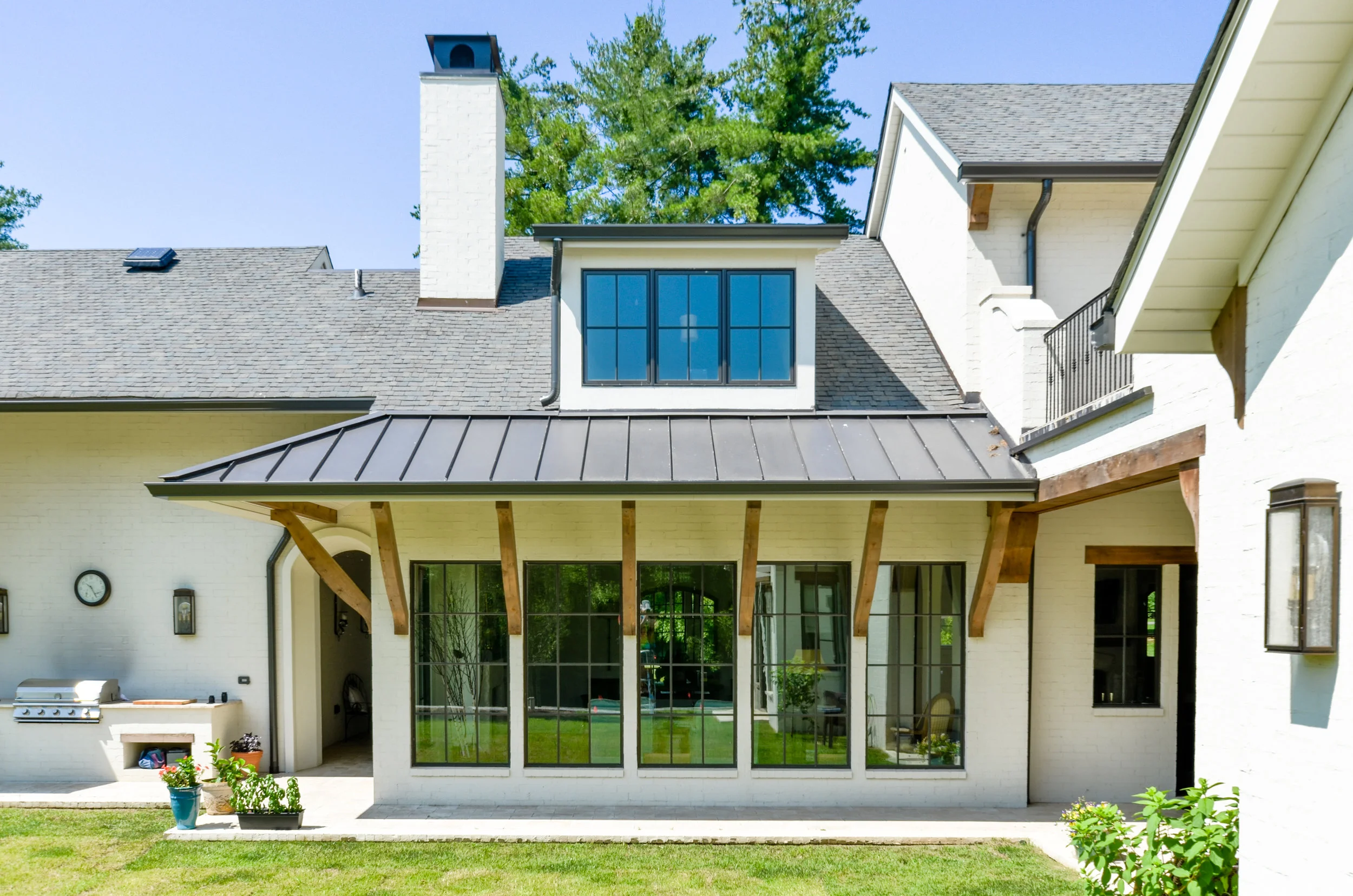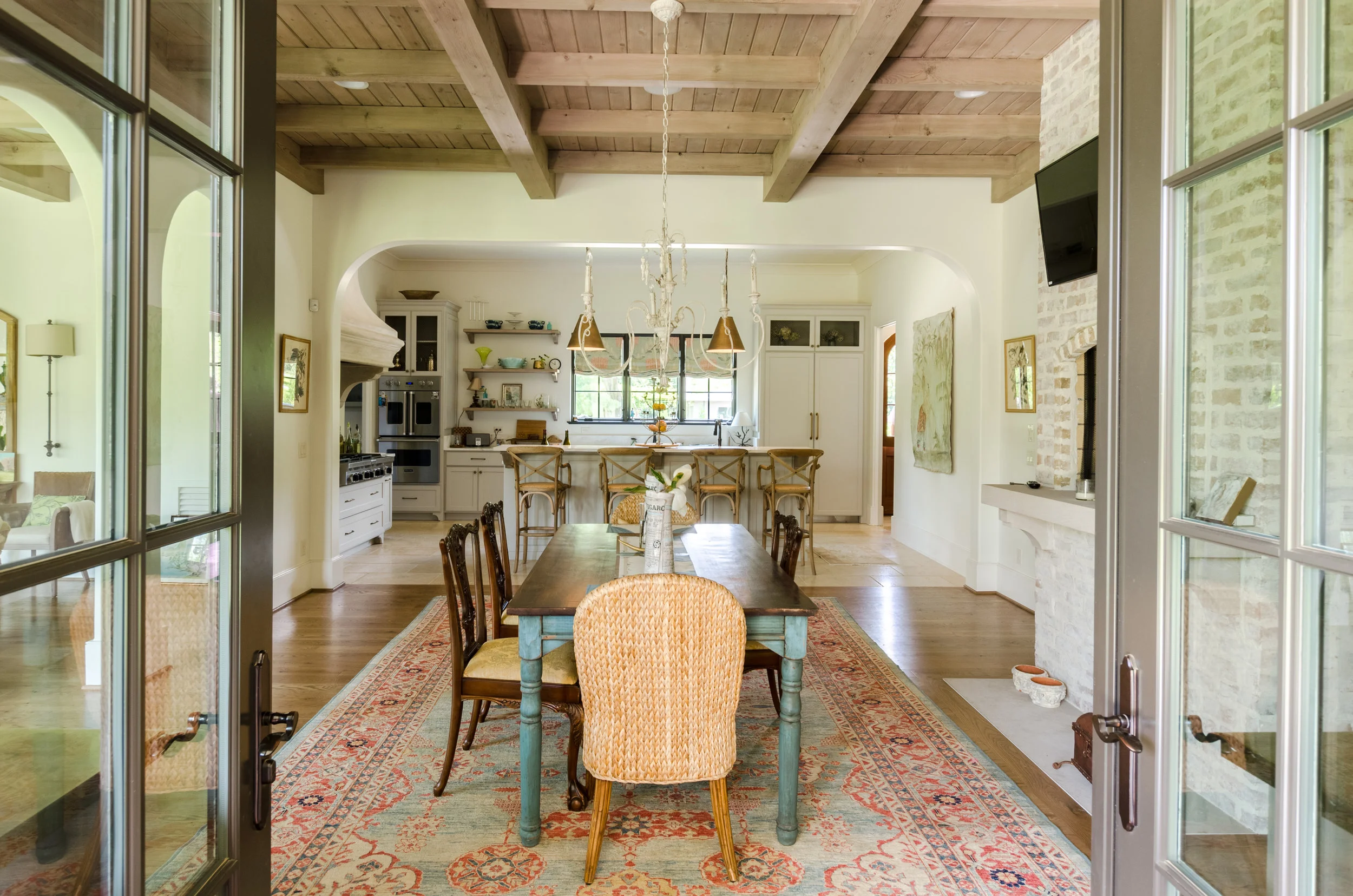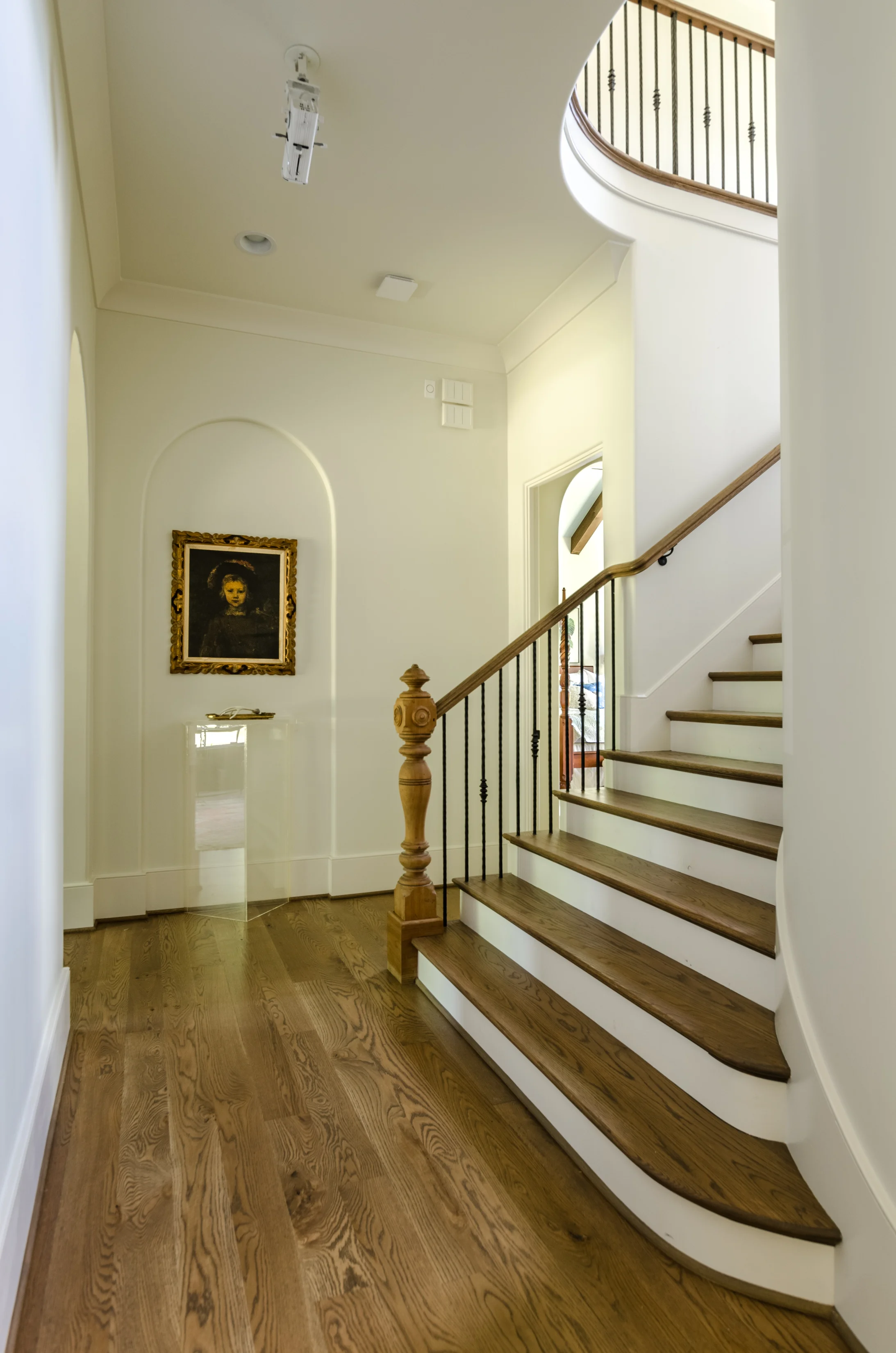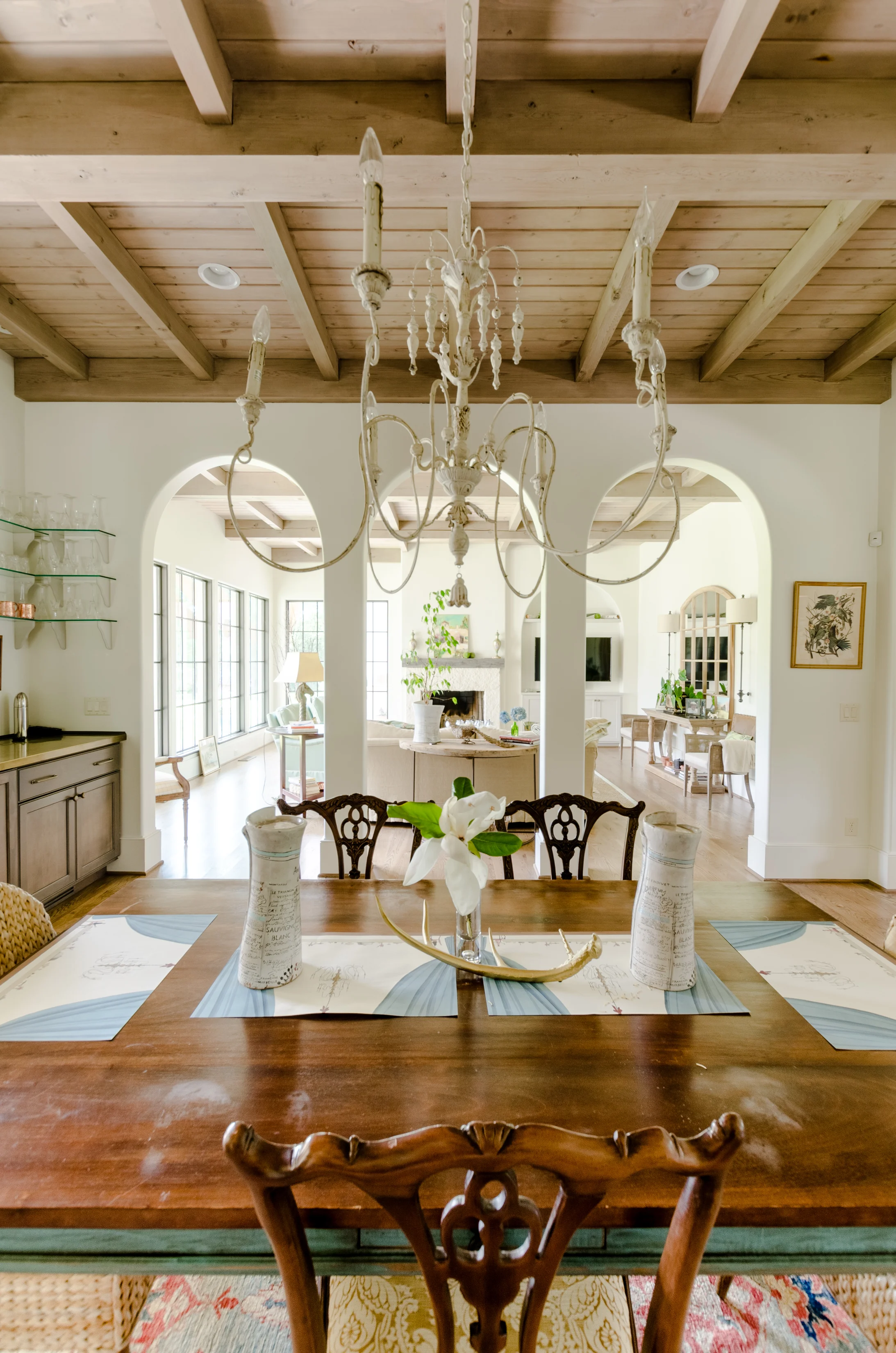 This residence in the Forest Hills area of Nashville Tennessee was inspired by Tuscan and other Mediterranean precedents filtered through the client's love of coastal houses- but then transformed to be appropriate to its site and context. The site is in an area of rolling hills, but relatively flat for the area, so the architecture takes clues from the horizontality of the property. The drive leads through a stand of pine trees that shield the house from the busy thoroughfare, and gracefully swings in front of a deeply recessed front entry arch. The front entry immediately connects to a covered terrace, the back lawn and the views beyond- and separates the private areas of the house, to the left, from the more public areas, to the right. Arcades divide spaces in order to keep them open and contemporary, yet defined as separate rooms and functions.